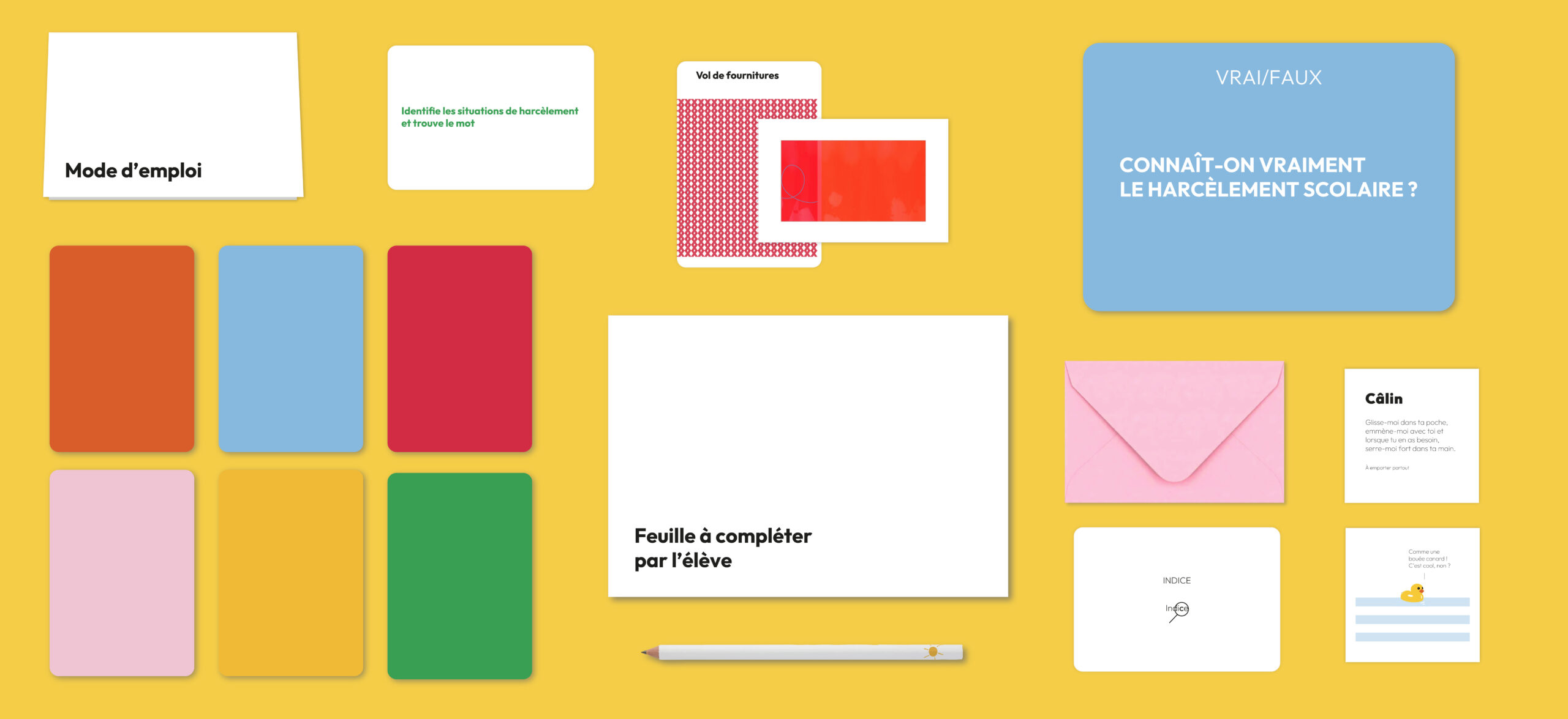Nous avons conçu un jeu de cartes immersif, pour permettre aux enfants et aux adolescents d’identifier les caractéristiques du harcèlement entre pairs, comprendre ses conséquences sur la santé des victimes, des auteurs et des témoins et savoir comment réagir. Un outil clé en main, engageant et profondément pédagogique.